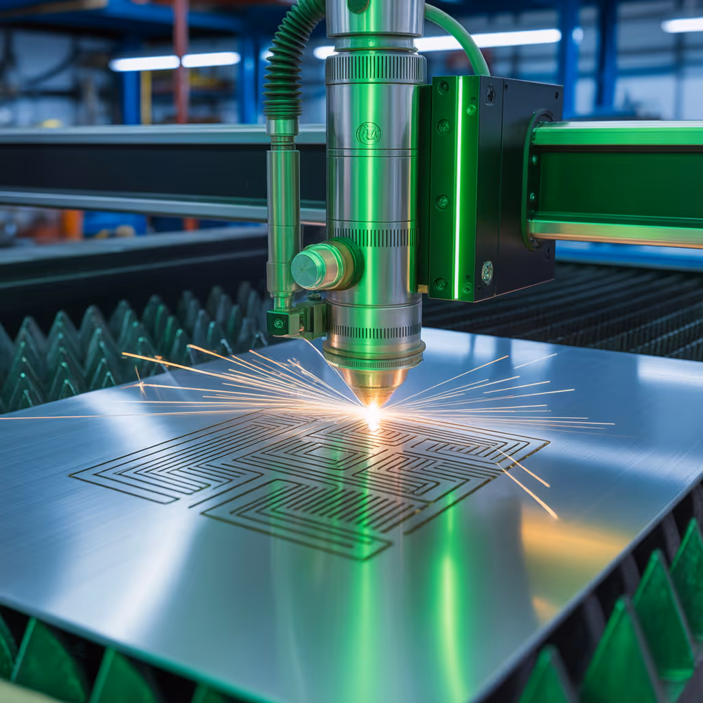 La découpe laser est une technique de fabrication qui utilise un faisceau lumineux très concentré pour chauffer et séparer la matière : on peut ainsi « découper » des tôles de métal (acier, inox, aluminium) avec une extrême précision. Le laser suit le contour de votre dessin CAO et vaporise le métal au passage, ce qui permet d’obtenir des formes complexes, des bords nets et des tolérances fines (jusqu’à ± 0,1 mm).